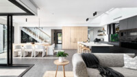 As you walk through the home, the spaces are immediately enhanced by layers of textures and subtle tones—timber, concrete and masonry—fostering a sense of comfort and warmth exploring the architectural interpretation of Gentle Brutalism.