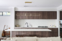 As you move further inside, you’ll be greeted by the beautiful Polytec Walnut Rojo kitchen cabinetry and Deluxe stone Frosty Carrina countertops. The kitchen opens to a spacious living and dining area, perfect for hosting guests or spending quality time with family.