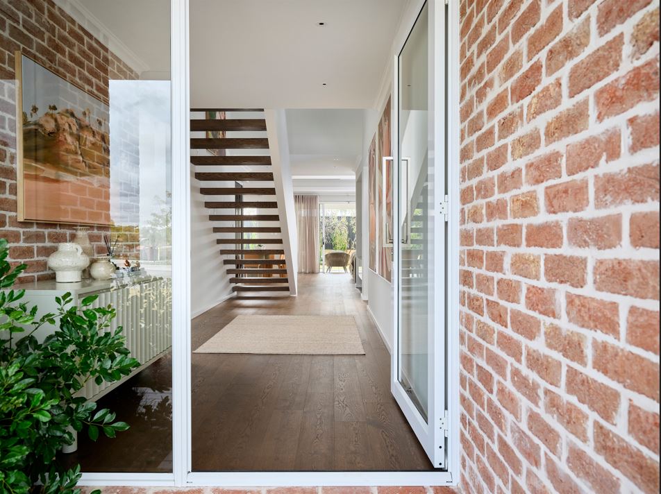“The design explores the West Australian vernacular architecture,” explains Joseph Calasara, WB Designer, and the creative mind behind The Brookton. “It showcases our love for outdoors, farm stays, camping and explorations of the bushlands and exquisite beauty of WA’s rural paradise.” From the moment you approach the home, you’re greeted by a façade that captures the essence of WA’s vibrant landscape. The striking combination of Austral Sculptured Sands Opaque Calcite feature brickwork, with its textural depth and smeared white grout, merges seamlessly with innovative vertical weatherboard cladding in Wattyl Tuz Lake. The curved walls create a modern interpretation of classic rural cottages, while the lightweight façade picture frame adds architectural sophistication.