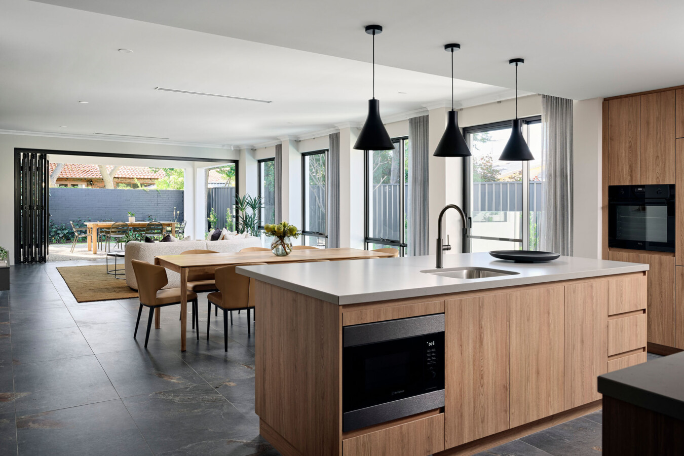 • Open-plan kitchen, living and dining zones designed as the heart of the home