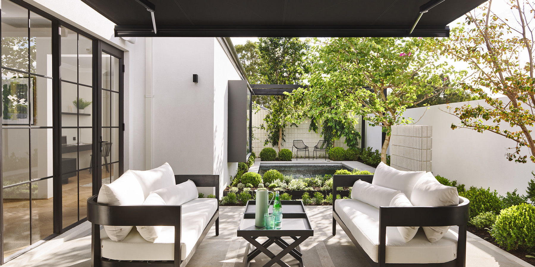 Outside the home you’ll find two outdoor lounges from Eco Outdoor that invite visitors through the home to the rear alfresco, garden and pool area.