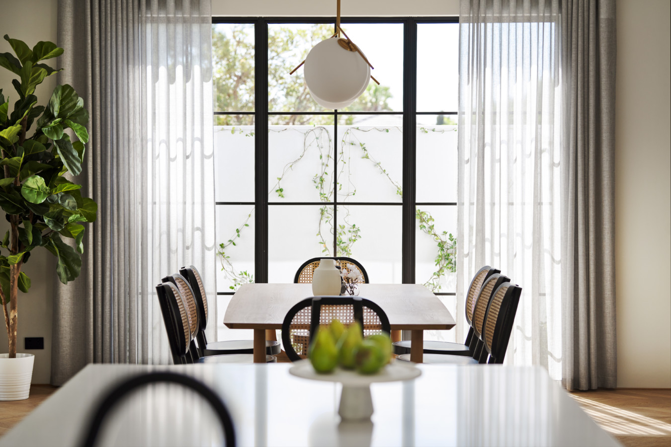 The Amour’s interior styling design began with one of Mel’s favourite pieces in the home, the bistro style chairs from HK Living which are featured in the dining room. The interior styling really evolved from this piece with the use of monochromatic materials throughout the home to bring the Parisian theme to life.