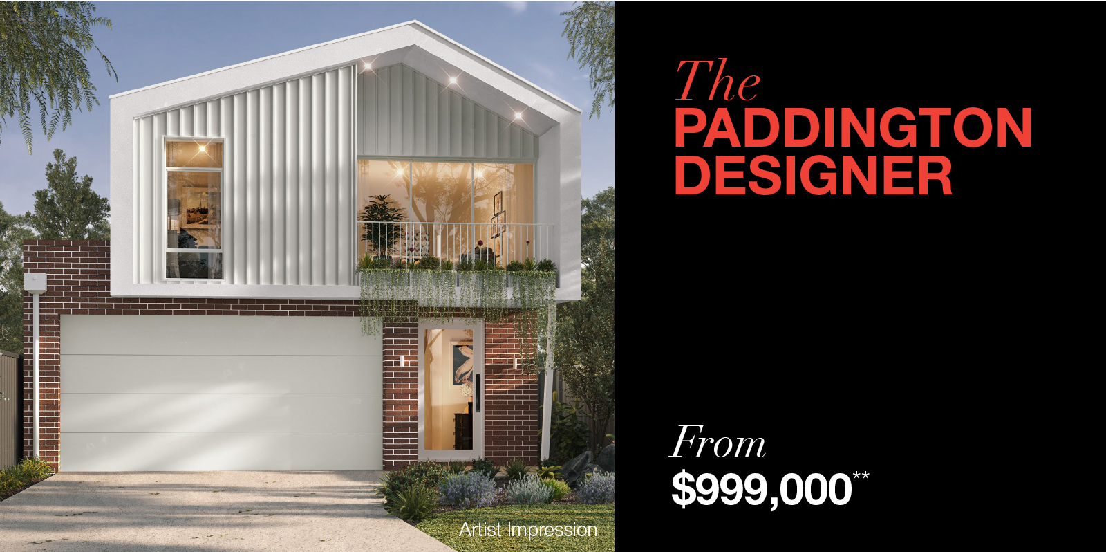 The Paddington Designer makes a bold architectural statement, with a sculptural gable form, textural cladding and soft greenery delivering expressive street appeal.